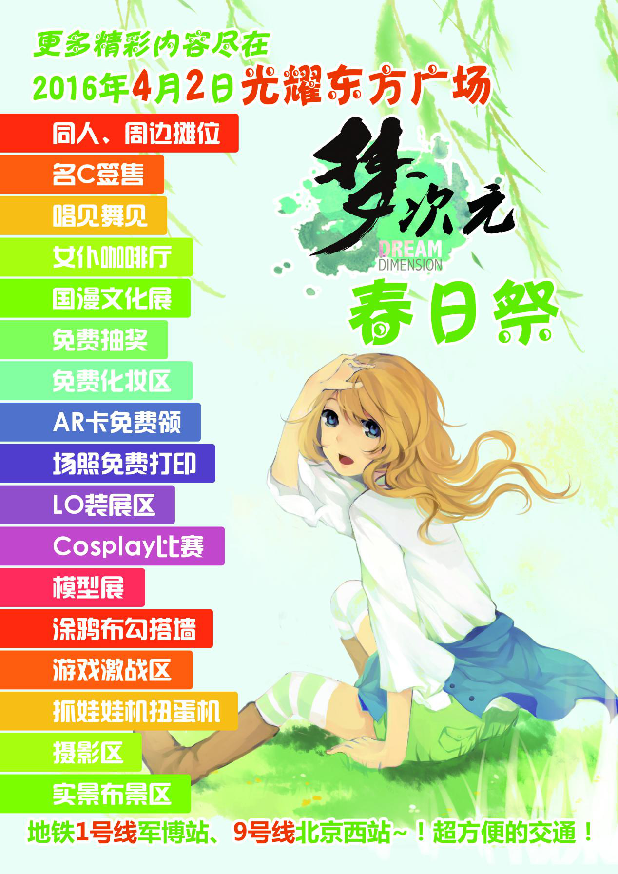 三十、小游戏赢手办:纯逛展太无聊?来来来!这里还有春日祭小游戏套圈、打枪、抛骰子、投硬币、真人飞行棋、砸金蛋!各种游戏玩不停!!! 三十一:神秘活动我不告诉你~!现场来了才知道~!( ̄︶ ̄) 三十二:【我拍APP】:二次元自拍秀~!快来拍些萌妹帅哥吧~!我帅我先照,你美你也拍( *^-^)ρ(^0^* ) 三十三:钓水球:彩色漂亮的水球萌妹子不来试试吗~! 一:寻找梦次元娘:现场有10名NPC手持梦次元娘形象卡~!只要收集齐5个不同的梦次元形象娘就可以兑换礼品哟!(o゜▽゜)o☆ 二、抽抽抽奖区:扫码关注梦次元萌萌的官博吧~ 凭门票每个人都可以免费抽奖一次~堵上官博娘的节操告诉大家100%中奖,各种小礼物等你拿! 三、舞台福利:随机掉落现金红包哟~~~来抢伐?!(*^▽^*)(⁄ ⁄•⁄ω⁄•⁄ ⁄)⁄废话完了…… 欢迎加入我们!梦次元冬日祭,有你更温暖。 +提示: 联络梦次元-咨询热线:18701125667 媒体合作:QQ 634274423展务咨询:旋律 QQ273586823摊位咨询:幻影 QQ1052812958 舞台咨询:黑明 QQ241802835 票务咨询:阿布 QQ634274423咨询热线:18701125667 联系理事长:18201173851 梦次元机智天使围观群:292800087 梦次元节操味围观群:161178412 梦次元摊主群:279656471