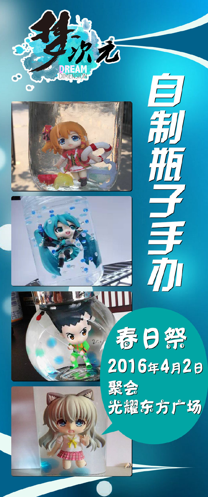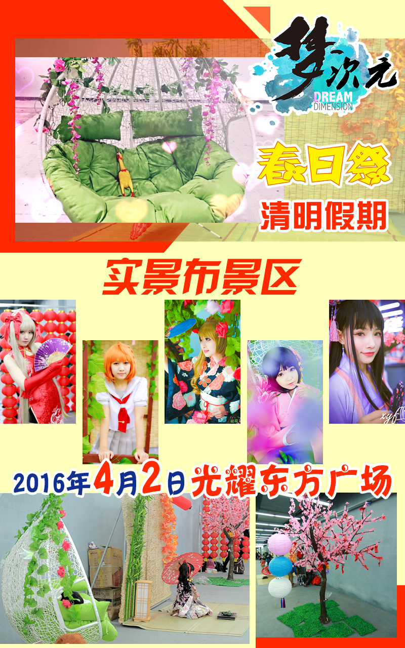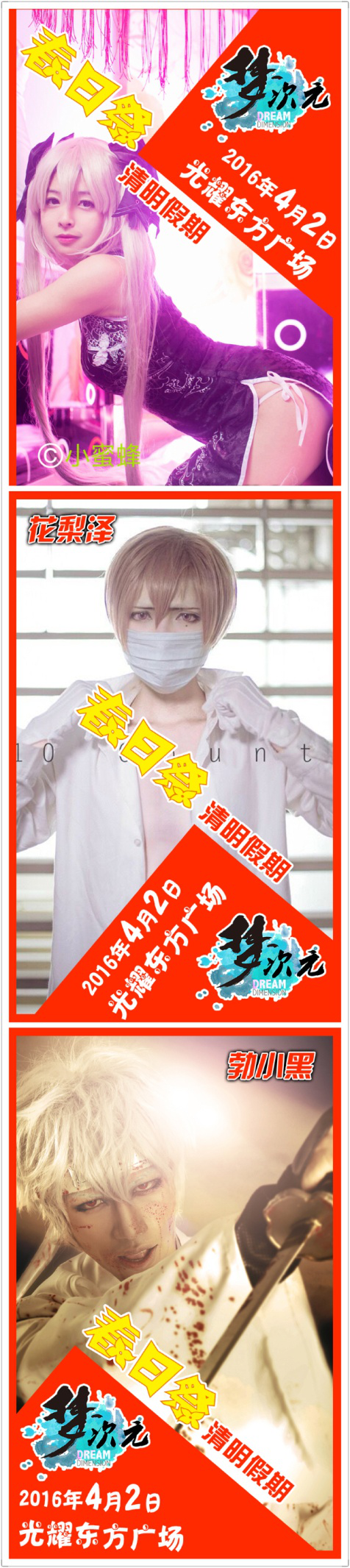 十三:小游戏赢手办:纯逛展太无聊?来来来!这里还有春日祭小游戏套圈、打枪、抛骰子、投硬币、真人飞行棋、砸金蛋!各种游戏玩不停!!! 十四:尖叫鸡解压区!200只大黄鸡随便你捏!简直丧心病狂…但是玩起来根本停不下来……… 2333333~ 十五:自制瓶子手办:免费提供水宝宝~!现场还有各种瓶子、手办等你开脑洞~把你的男神女神封印起来吧!咦?不许把人家关进瓶子啦嘤嘤嘤! 十六:和风面具DIY:祭典必备!来自己设计制作一个独一无二的面具吧!(● ̄(エ) ̄●) 十七:二次元现场求CP :还在孤独一个汪出cos吗~!来!吃了这把狗粮!现场来求CP吧!(゜▽^*))(没求到的话我给你推荐另一款狗粮……(泥垢!) 十八:摄影区: 特别邀请帝摄联、丧病喵、泛C、帝约联等靠谱高大上的摄影巨巨们前来拍拍拍~!感谢摄影们的辛勤付出!现场每位用心用爱出角色的coser们,叫上小伙伴一起来赞赞哒摄影区面基留影吧,和我一起组个星星手如何(☆´W`)c(喂!)