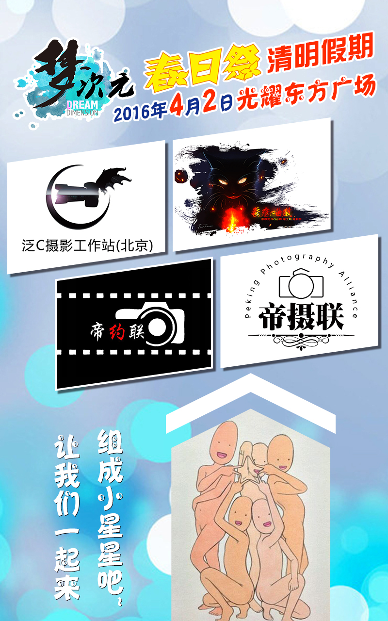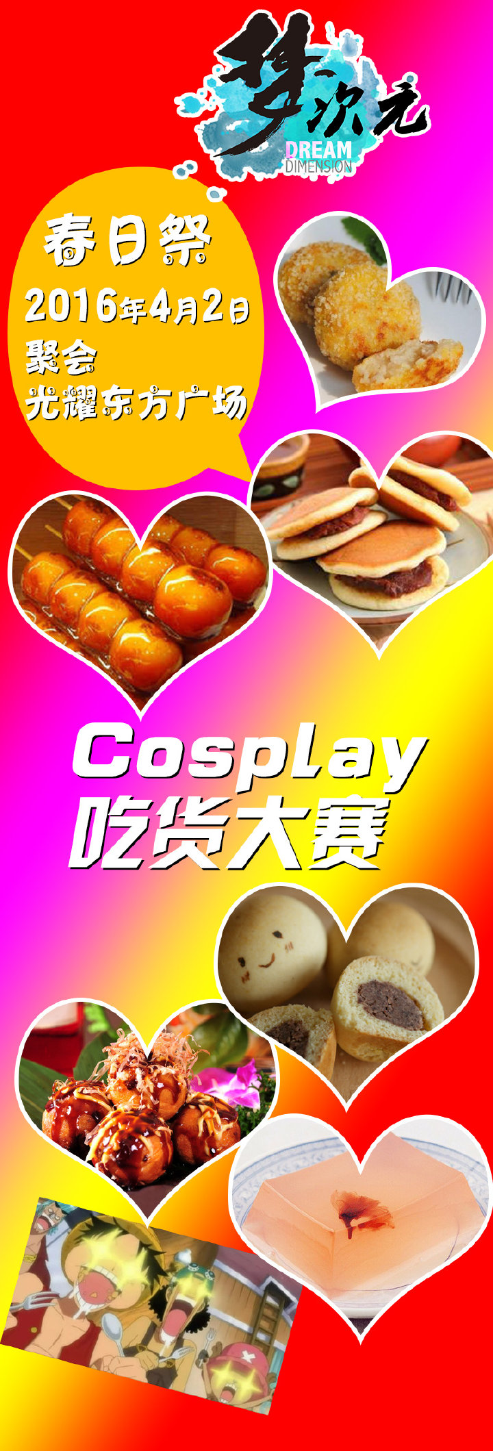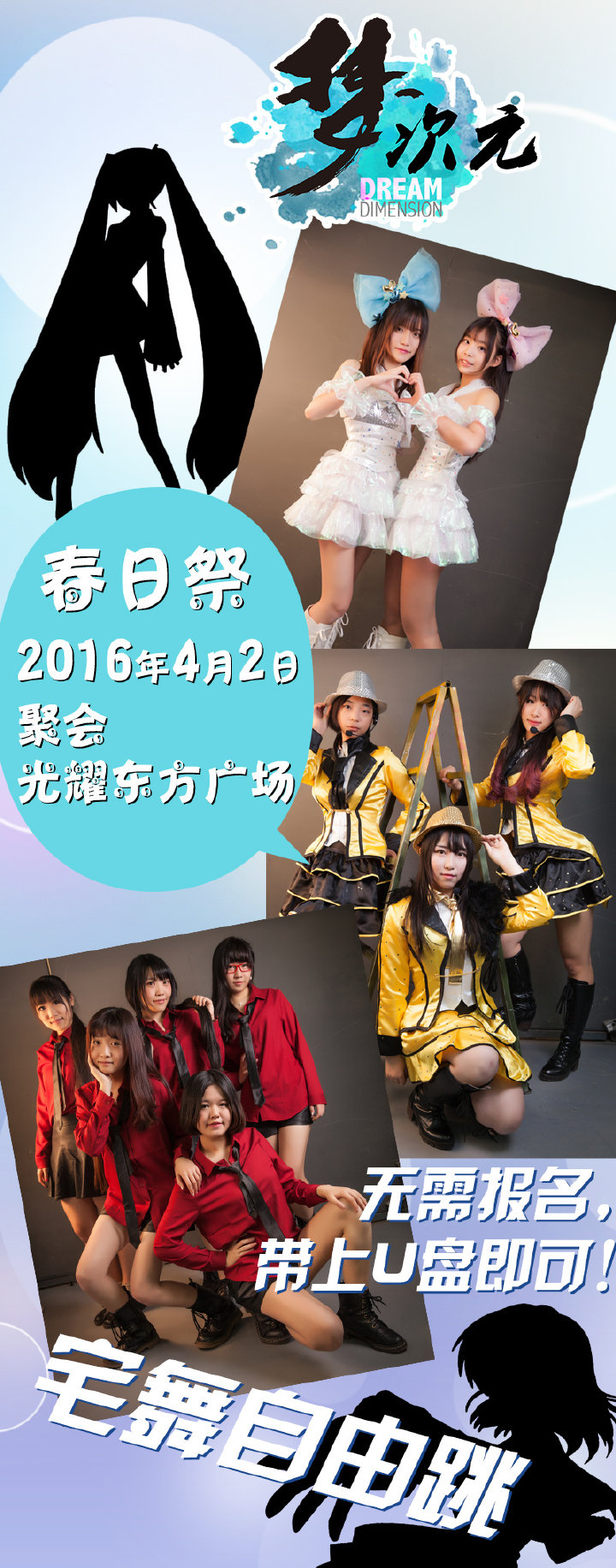 十三:小游戏赢手办:纯逛展太无聊?来来来!这里还有春日祭小游戏套圈、打枪、抛骰子、投硬币、真人飞行棋、砸金蛋!各种游戏玩不停!!! 十四:尖叫鸡解压区!200只大黄鸡随便你捏!简直丧心病狂…但是玩起来根本停不下来……… 2333333~ 十五:自制瓶子手办:免费提供水宝宝~!现场还有各种瓶子、手办等你开脑洞~把你的男神女神封印起来吧!咦?不许把人家关进瓶子啦嘤嘤嘤! 十六:和风面具DIY:祭典必备!来自己设计制作一个独一无二的面具吧!(● ̄(エ) ̄●) 十七:二次元现场求CP :还在孤独一个汪出cos吗~!来!吃了这把狗粮!现场来求CP吧!(゜▽^*))(没求到的话我给你推荐另一款狗粮……(泥垢!) 十八:摄影区: 特别邀请帝摄联、丧病喵、泛C、帝约联等靠谱高大上的摄影巨巨们前来拍拍拍~!感谢摄影们的辛勤付出!现场每位用心用爱出角色的coser们,叫上小伙伴一起来赞赞哒摄影区面基留影吧,和我一起组个星星手如何(☆´W`)c(喂!)